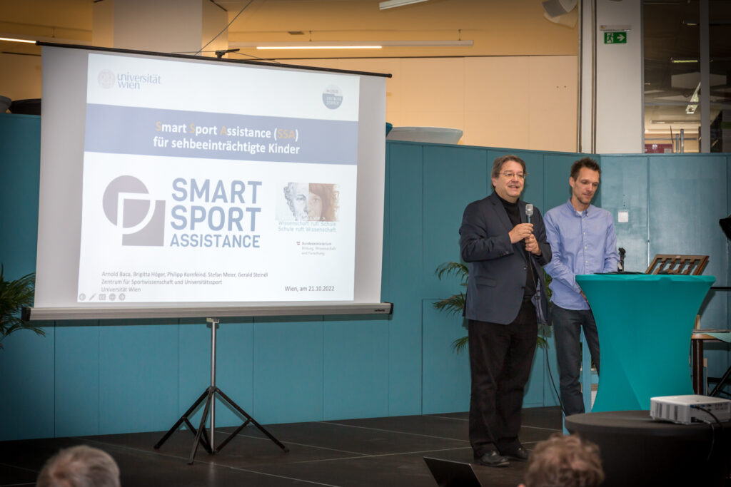 Das von der Agentur für Bildung und Internationalisierung (OeAD) geförderte Projekt „Smart Sport Assistance“ setzt sich zum Ziel Teilhabebarrieren von sehbeeinträchtigten Kindern und Jugendlichen am Bewegungs & Sportunterricht durch eine Entwicklung technischer Systeme möglichst abzubauen und die Bewegungsaktivität von blinden und sehbeeinträchtigten Kindern und Jugendlichen zu fördern. Hierzu werden Schüler/innen mit und ohne Blindheit und Sehbeeinträchtigung gemeinsam unter Verwendung aktueller Technologien an der Entwicklung von Assistenzsystemen zusammenarbeiten. Der Entwicklungsprozess berücksichtigt das „Open Innovation“-Prinzip, das einen stetigen Austausch aller Schüler/innen vorsieht (z.B. erforschen Schüler/innen ohne Blindheit und Sehbeeinträchtigung Teilhabebarrieren aus der Perspektive von Beeinträchtigten, entwickeln Schüler/innen selbst Prototypen und testen diese gemeinsam in Mitmach- und Ausprobier-Events). Hierdurch wird einerseits eine größtmögliche Anwendungsorientierung der entwickelten Assistenzsysteme sichergestellt, die sich an den Bedürfnissen der Schüler/innen orientiert. Andererseits soll hierdurch auch Sensibilität für Blindheit und Sehbeeinträchtigung und die damit einhergehenden Bewegungsmöglichkeiten bei den nicht Beeinträchtigten geschaffen werden.