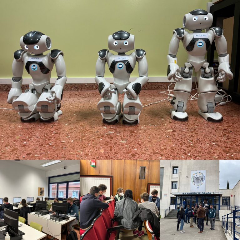 Montags war dann der erste Programmpunkt in unserer Partnerschule, der IES Navarra Villoslada in Pamplona. Dort präsentierten die Gruppen aus den teilnehmenden Nationen Italien (Pavullo), Griechenland (Kalymnos), Spanien (Pamplona) und wir unsere Projektfortschritte rund um den humanoiden Roboter NAO. Während die anderen Schulen sich sehr mit der Sprachsteuerung und dem Thema Inklusion beschäftigten, hat unser Team einen einfachen Quick-Start Guide für Nao und Python über unterschiedlichste Betriebssysteme auf einer Website zusammengefasst. Diese Seite kann einfach mit Übungen/Aufgabenstellungen erweitert werden uns soll so das Projekt BRAIINS unterstützen.